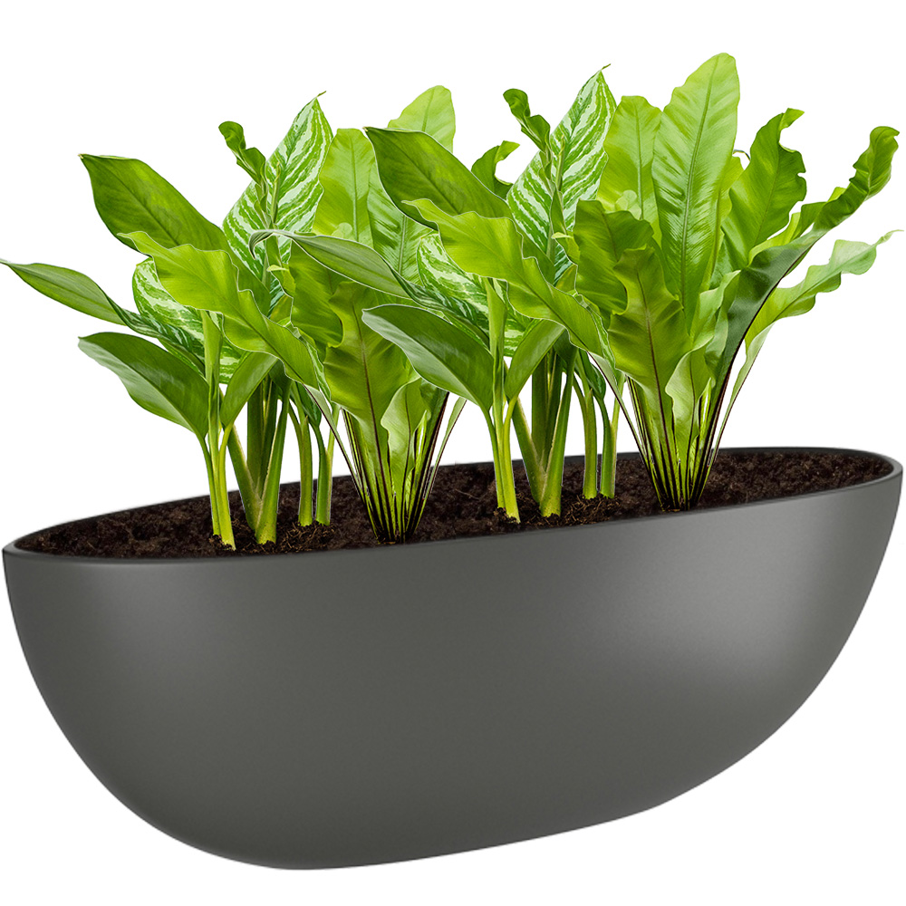 Geef jouw interieur of tuin een stijlvolle boost met de Amsterdam bootschaal. Deze ovale plantenbak is perfect voor wie houdt van modern en eigentijds design. Dankzij de geruwde structuur krijgt de Amsterdam bootschaal een stoere uitstraling die goed past in zowel minimalistische als kleurrijke ruimtes. Bovendien kun je deze plantenbak bestellen in elke gewenste RAL-kleur, zodat hij perfect aansluit bij jouw persoonlijke stijl en interieur.