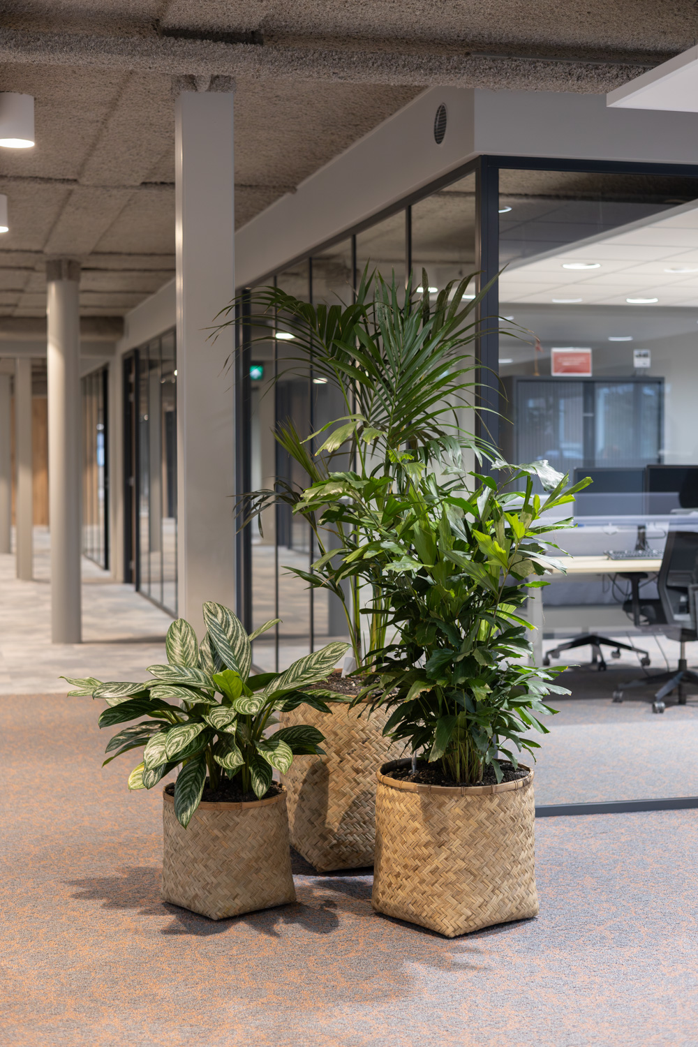 Deze plantenbak is robuust en beschikbaar in meerdere afmetingen, waardoor hij geschikt is voor uiteenlopende plantcombinaties. De royale diameter biedt ruimte aan grotere kantoorplant of meerdere soorten bij elkaar. Let op: vanwege het natuurlijke materiaal raden we gebruik binnenshuis een inzethoes aan. Dit leveren wij er standaard, inclusief beplanting bij.