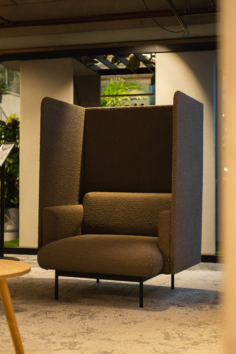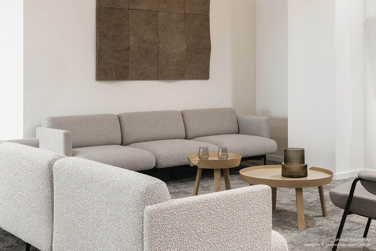 De diepe zitting van de zitbank zorgt voor een aangenaam zakkend effect, waardoor de loungebank zich perfect aanpast aan het lichaam. Met behulp van verbindingsstukken kan de Fora bank modulair worden samengesteld, zodat hij volledig aansluit bij specifieke behoeften. De organische vormen van de zitbank en zachte texturen van de teddy stof creëren een huiselijke sfeer.