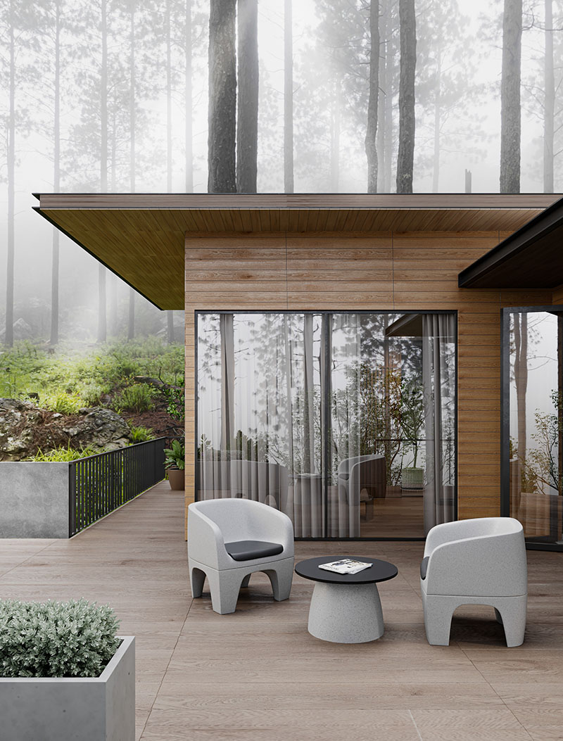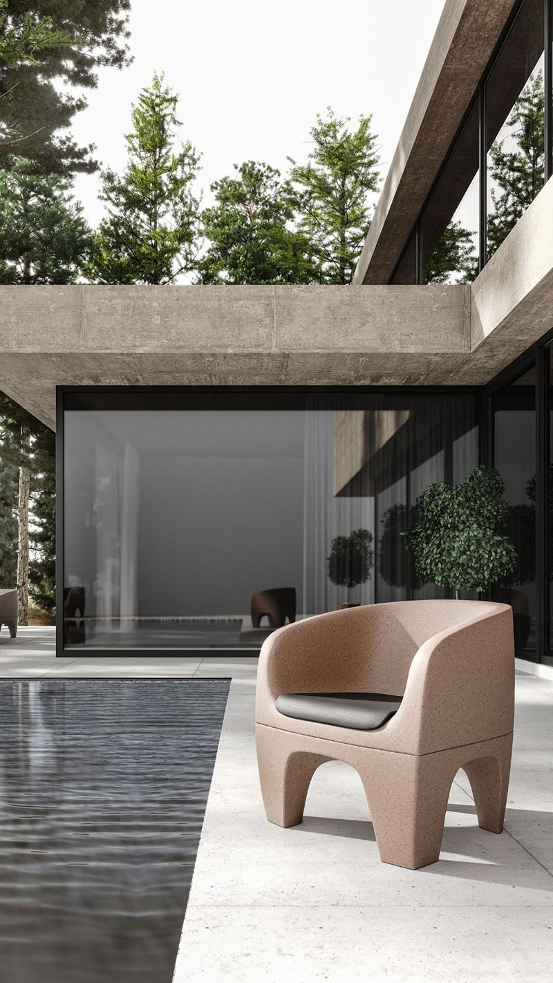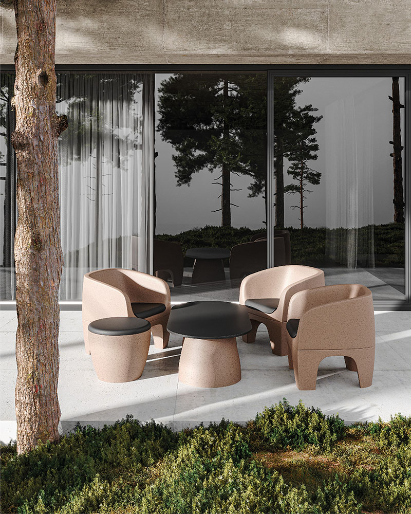 Gemaakt van hoogwaardig, weerbestendig kunststof, biedt de stoel niet alleen een lange levensduur, maar is hij na gebruik volledig recyclebaar. Verkrijgbaar in grijs en beige past deze fauteuil moeiteloos in diverse interieurs. Voor extra comfort is een gestoffeerd zitkussen als accessoire beschikbaar.